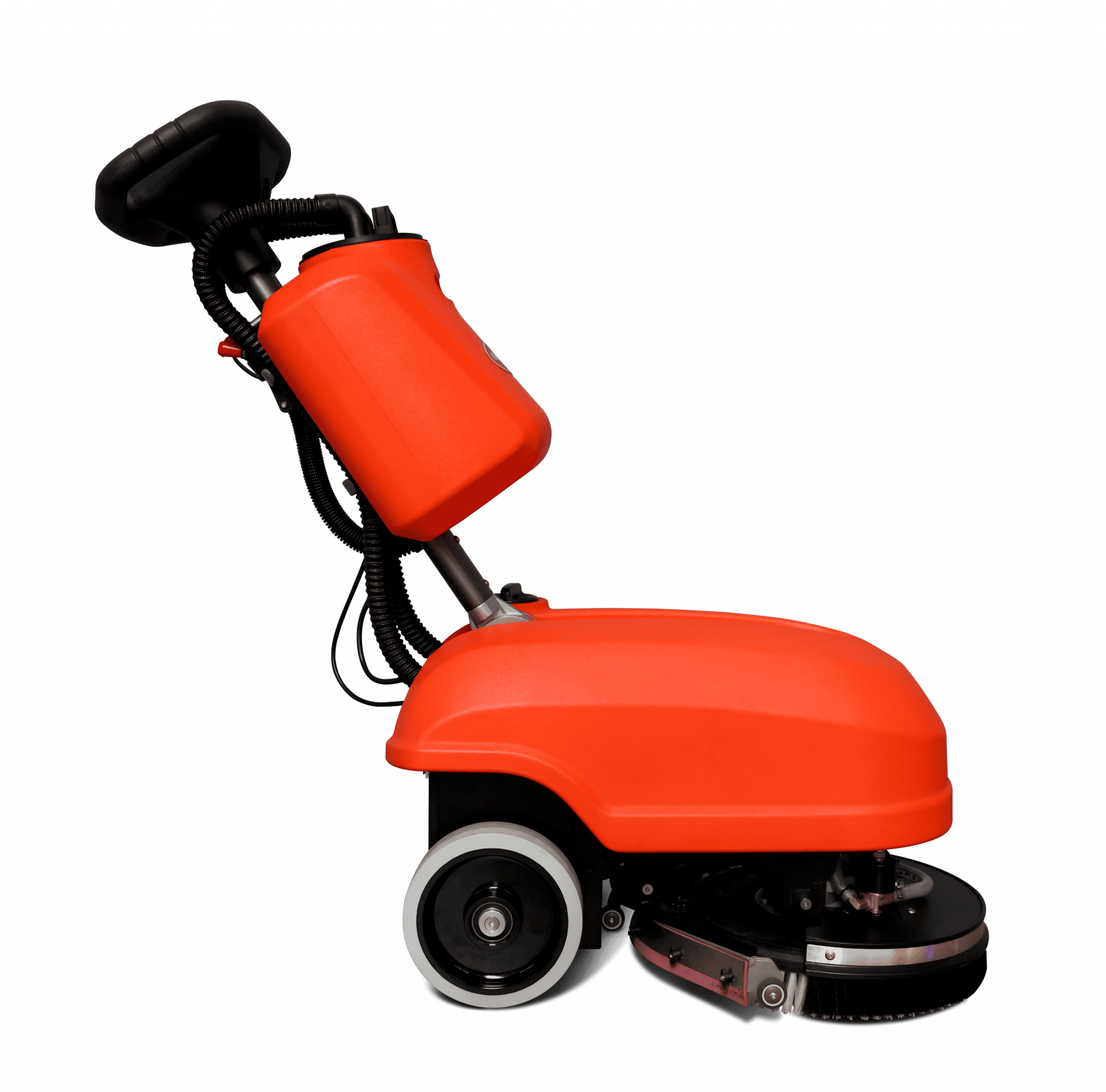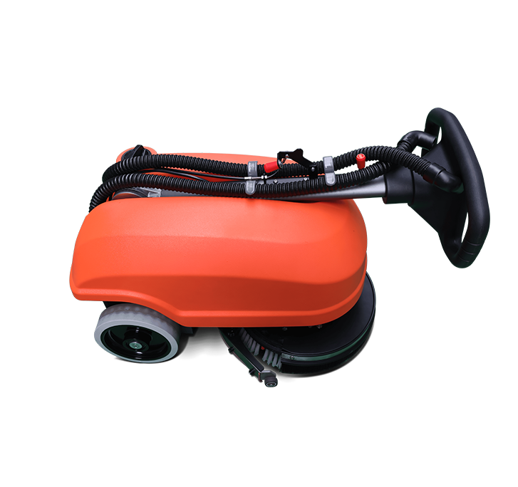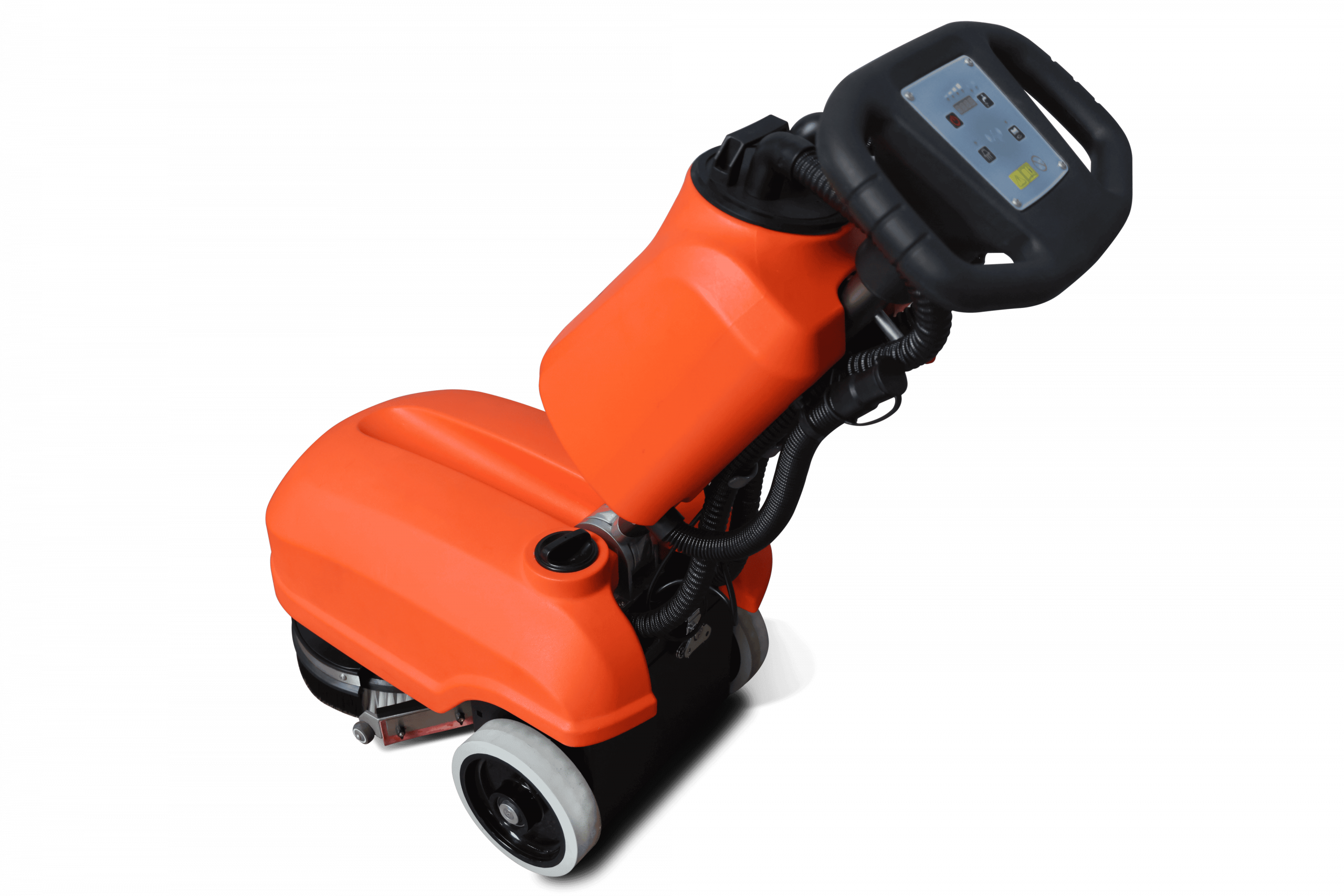 Компактные габариты и ширина щетки всего 380 мм обеспечивают удобную работу в узких пространствах. Энергоэффективная система управления и стандартный свинцово-кислотный аккумулятор 24В 32А∙ч позволяют работать без подзарядки от 1,5 до 2 часов. Панель управления с защитой от влаги, запуск одной кнопкой, регулировка подачи воды и удобный эргономичный дизайн обеспечивают простоту эксплуатации. Алюминиевая литая рама скребка устойчива к коррозии. Отсек для чистой воды облегчает чистку и обслуживание. Система скребка легко разбирается без инструментов, что упрощает замену лезвия. Ручка складывается для компактного хранения.