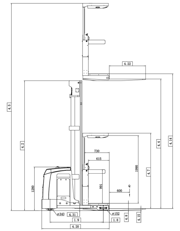 | 4.4 | Высота подъема | h3 (мм) | 4500/4800/6000 | 7000/8000/9000 | |