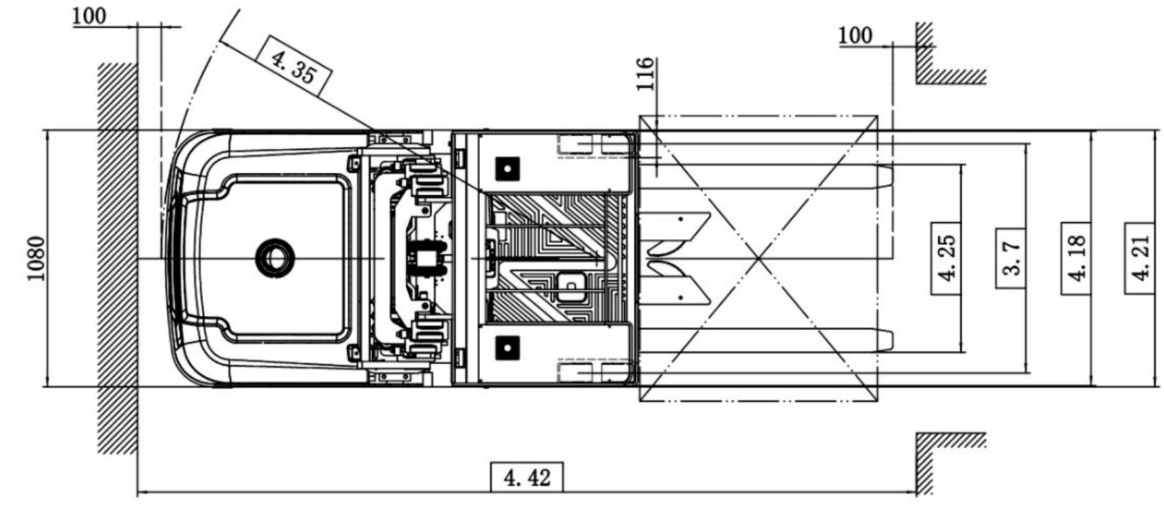 | 4.33 | Ширина прохода с паллетой 1000×1200 | Ast (мм) | 1400 | 1620 | |