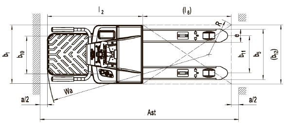 | 4.33 | Ширина прохода с паллетой 1000×1200 | Ast (мм) | 2530 | 2960 | 2530 | 2960 | 2530 | 2960 | 2530 | 2960 | |