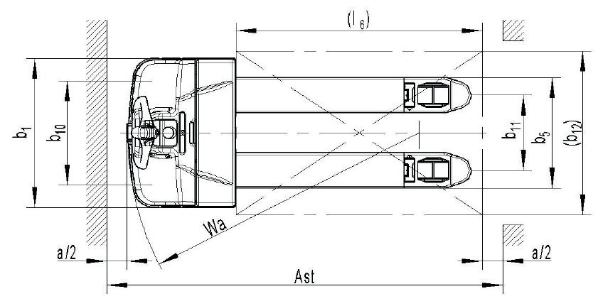 | 4.34 | Ширина прохода с паллетой 800×1200 | Ast (мм) | 2140 | 2205 | 2425 | |