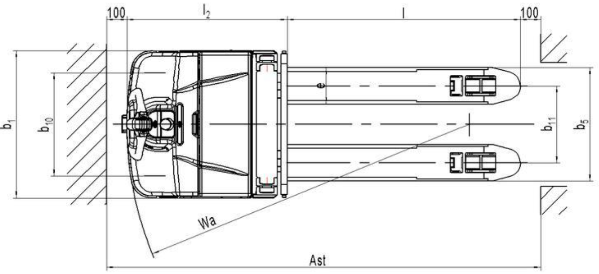4.33  Ширина прохода с паллетой 1000×1200  Ast (мм)  2040  2040  2155