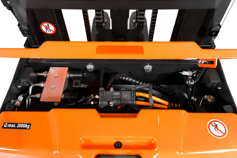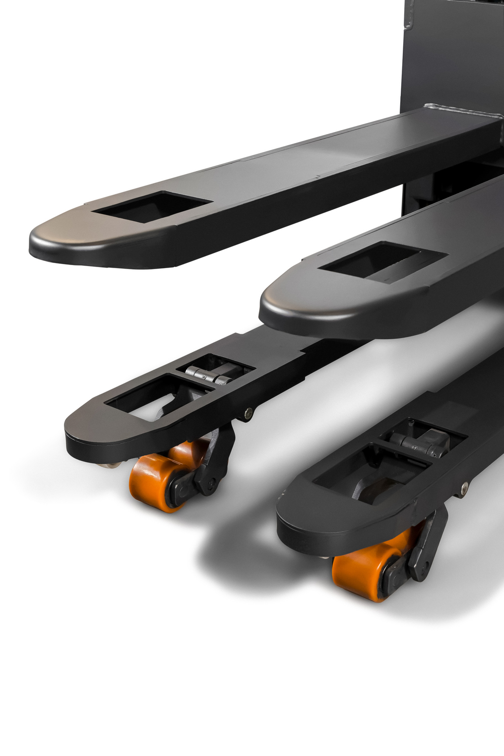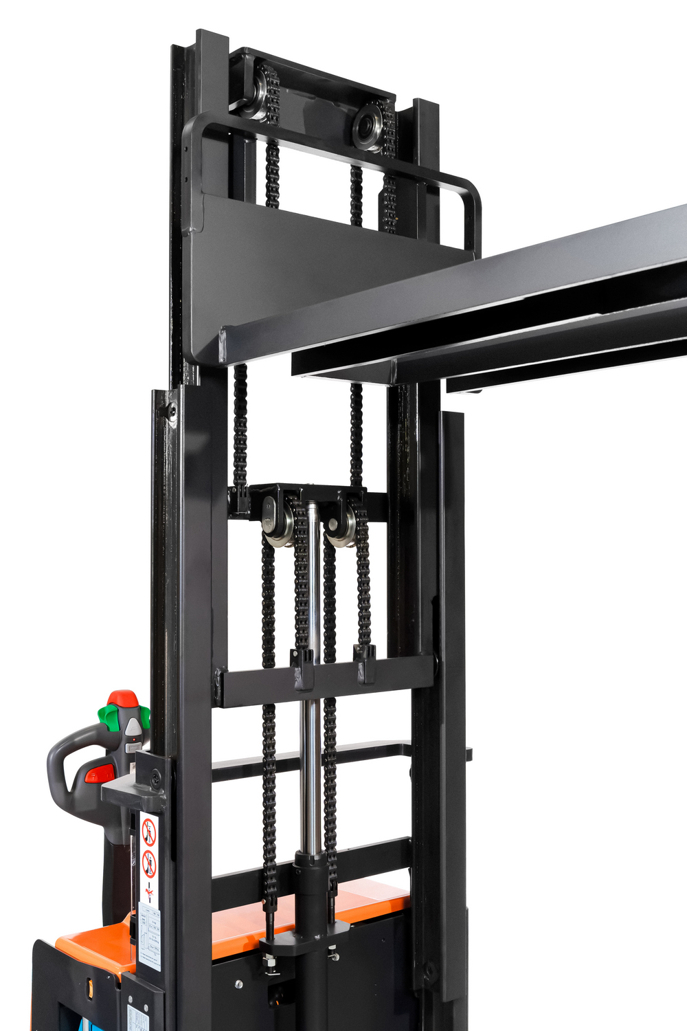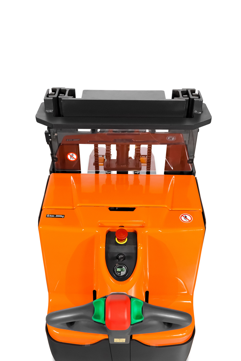 Модель грузоподъемностью 2000 кг оснащена функцией дополнительного подъема вил, что позволяет использовать ее как для транспортировки, так и для точного позиционирования поддонов при комплектации заказов.