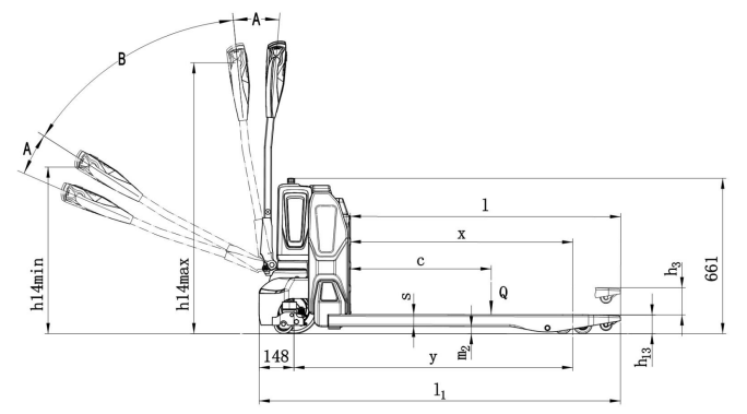 | 4.15 | Высота вил в нижнем положении | h13 (мм) | 75 **/ 80 | 75 **/ 80 | |