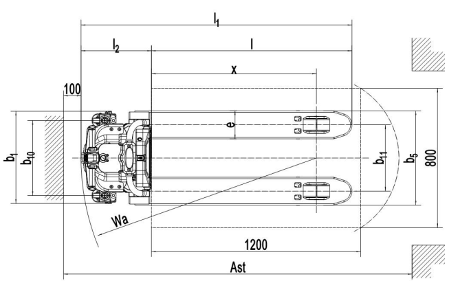 | 4.34 | Ширина прохода с паллетой 800×1200 | Ast (мм) | 2013 | 2013 | |