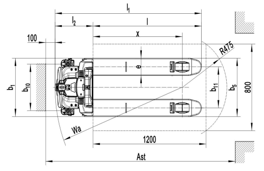 | 4.34 | Ширина прохода с паллетой 800×1200 | Ast (мм) | 2005 | 2005 | |