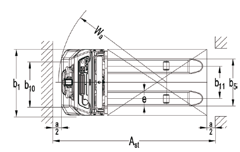4.33  Ширина прохода с паллетой 1000×1200  Ast (мм)  2167  2228  2247/2203 *
