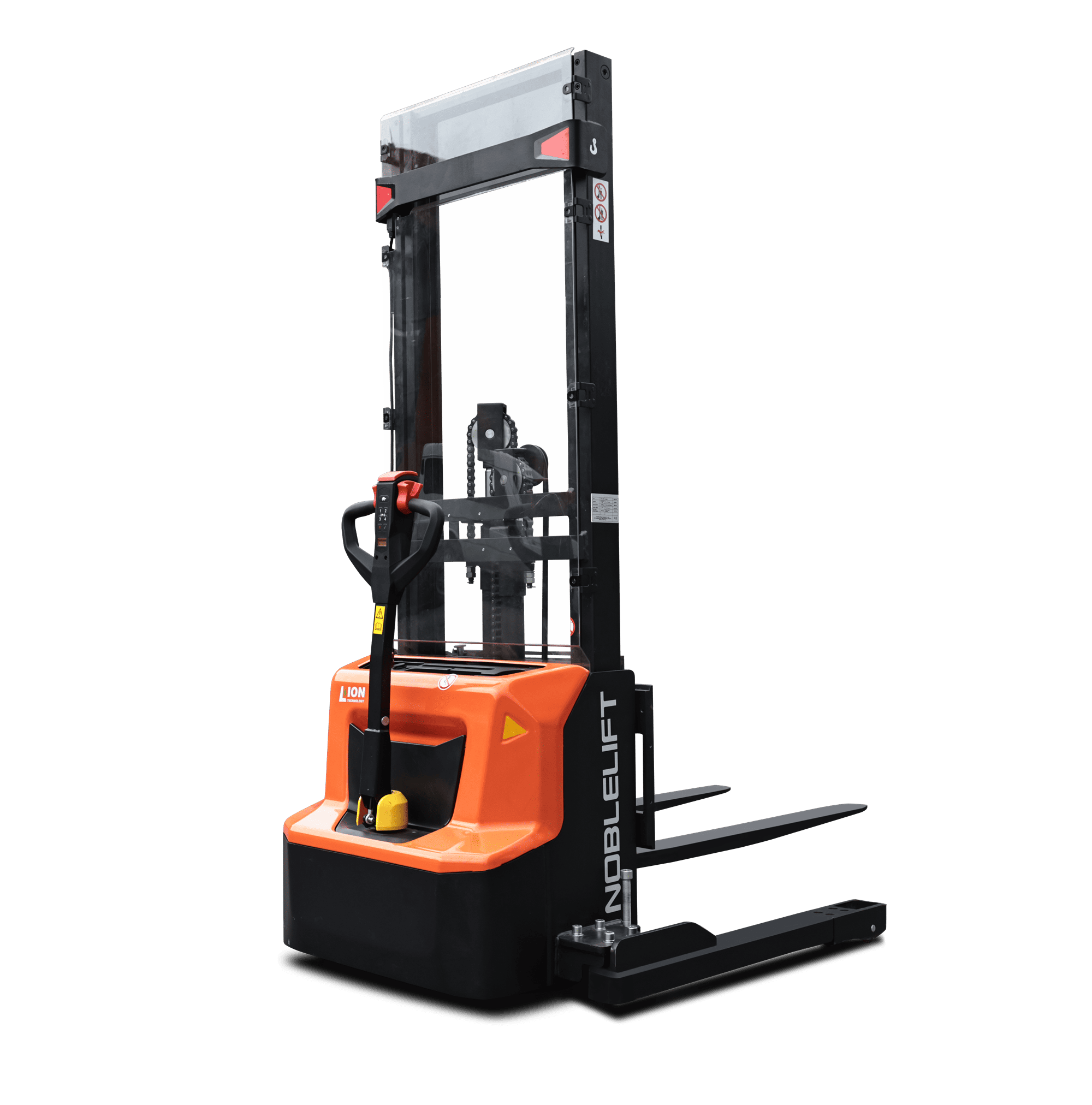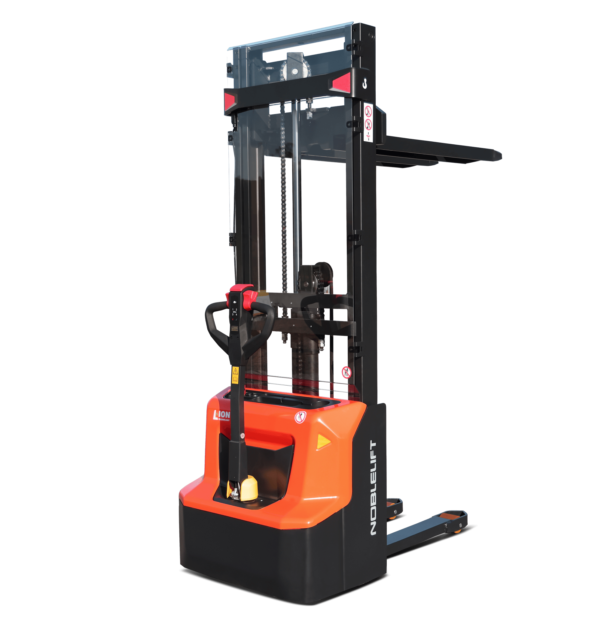 Линейка самоходных штабелеров сопровождаемого типа.