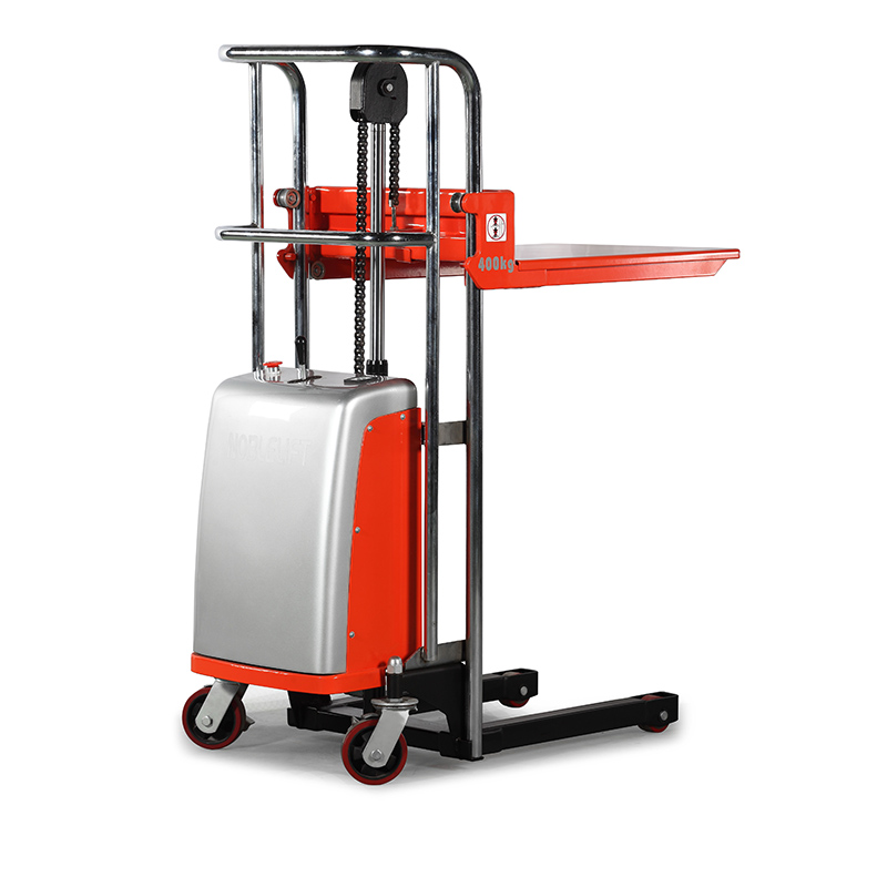Серия платформенных штабелеров с электрическим подъемом, рассчитанных на грузоподъемность до 400 кг и высоту подъема до 1415 мм.
