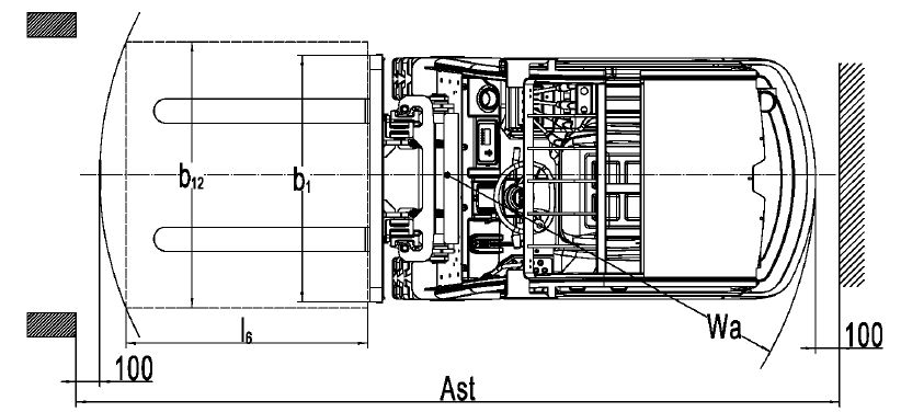 4.34  Ширина прохода с паллетой 800×1200  Ast (мм)  3292