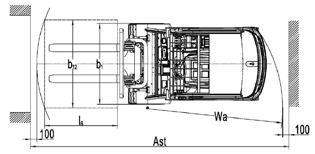 | 4.34 | Ширина прохода с паллетой 800×1200 | Ast (мм) | 3601 | 3601 | 3913 | 3918 | 4098 | 4168 | |