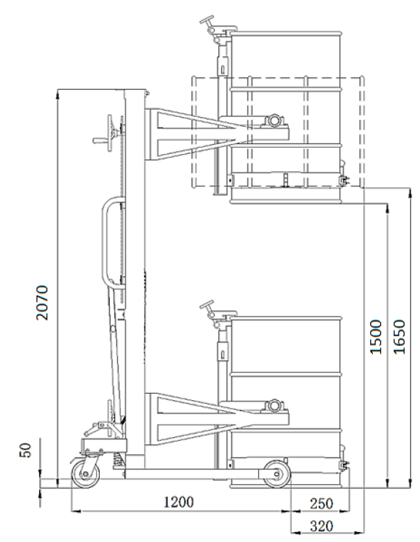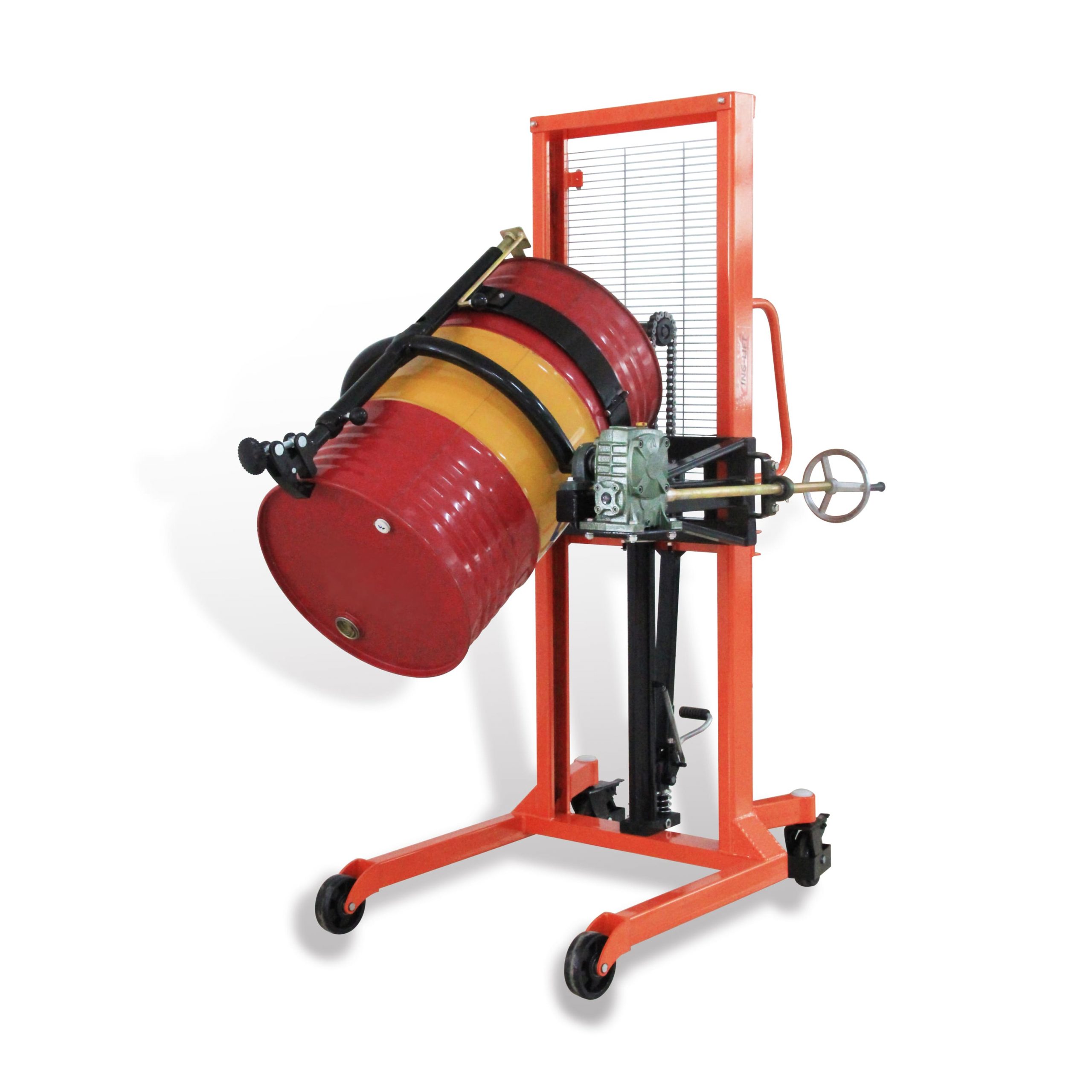 Бочкокантователь, предназначенный для перемещения и опрокидывания металлических и пластиковых бочек, с грузоподъемностью до 450 кг и высотой подъема до 1520 мм.