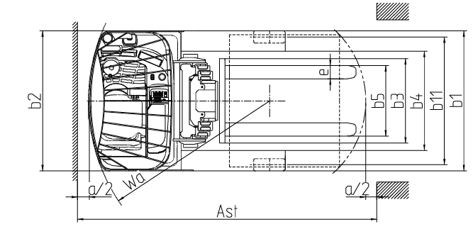 | 4.33 | Ширина прохода с паллетой 1000×1200 | Ast (мм) | 2720 | 2720 | 2840 | 2840 | 2840 | |