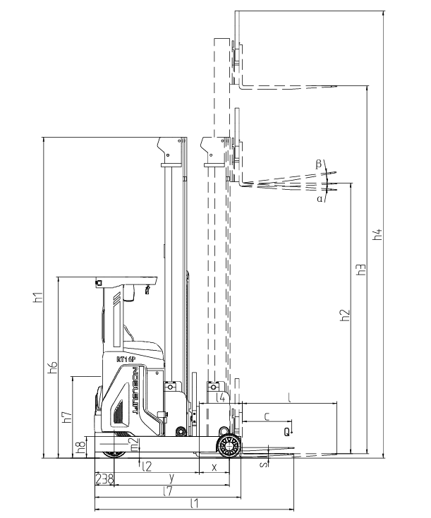 | Размеры | 4.1 | Наклон мачты/каретки вил вперед/назад | α/β (º) | 4/-2 | 4/-2 | 4/-2 | 4/-2 | 4/-2 |