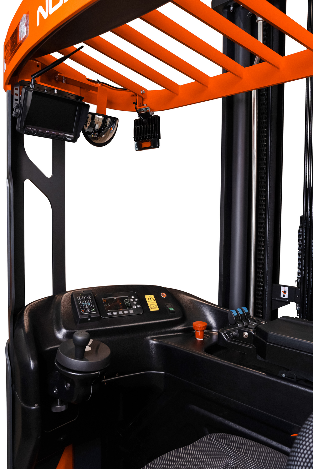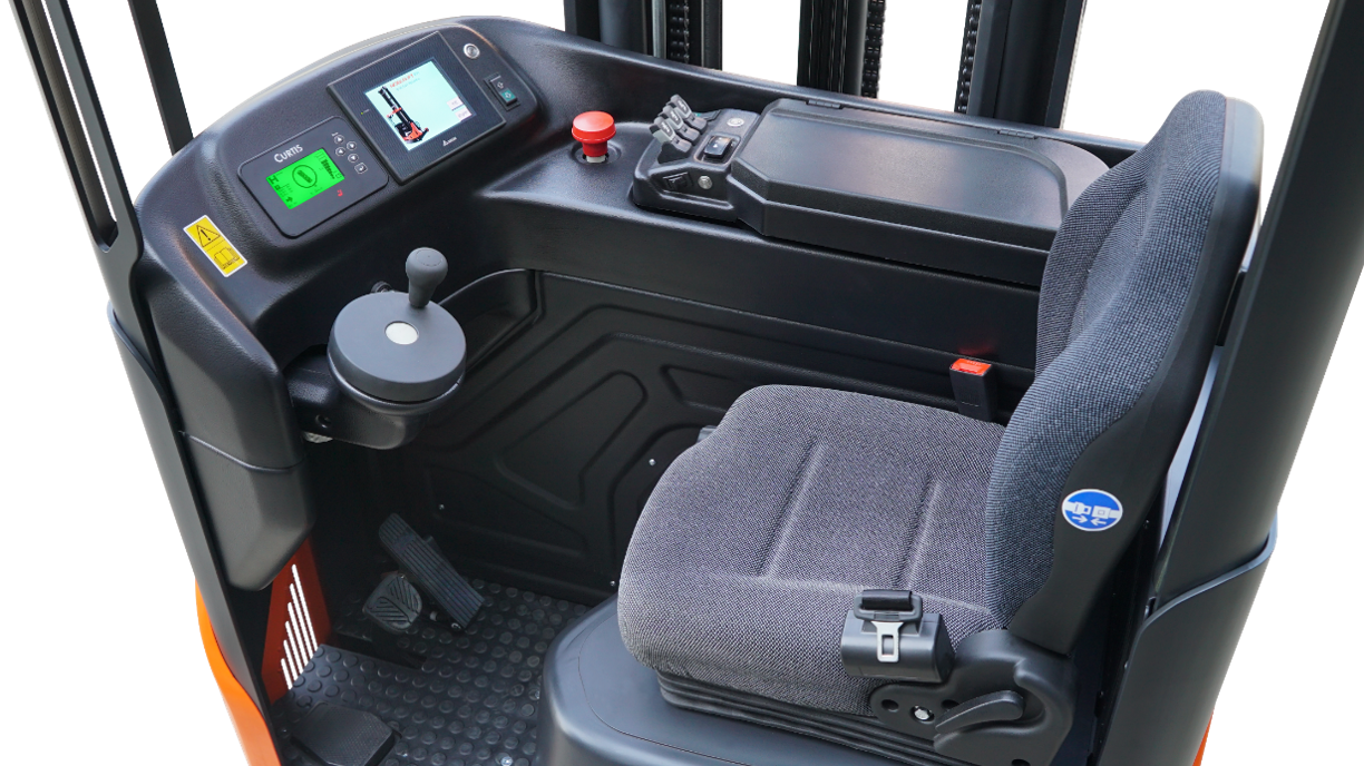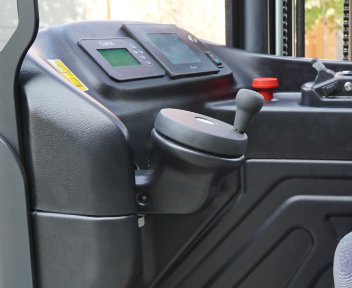- Контроллеры Curtis с информационной панелью, отображающей статус ричтрака, положение рулевого колеса, направление движения, время наработки в моточасах и уровень заряда АКБ