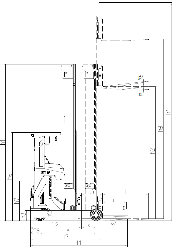 | Размеры | 4.1 | Наклон мачты/каретки вил вперед/назад | α/β (º) | 4/-2 | 4/-2 |