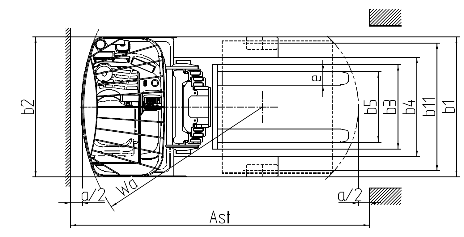 | 4.33 | Ширина прохода с паллетой 1000×1200 | Ast (мм) | 2880 | 2880 | |