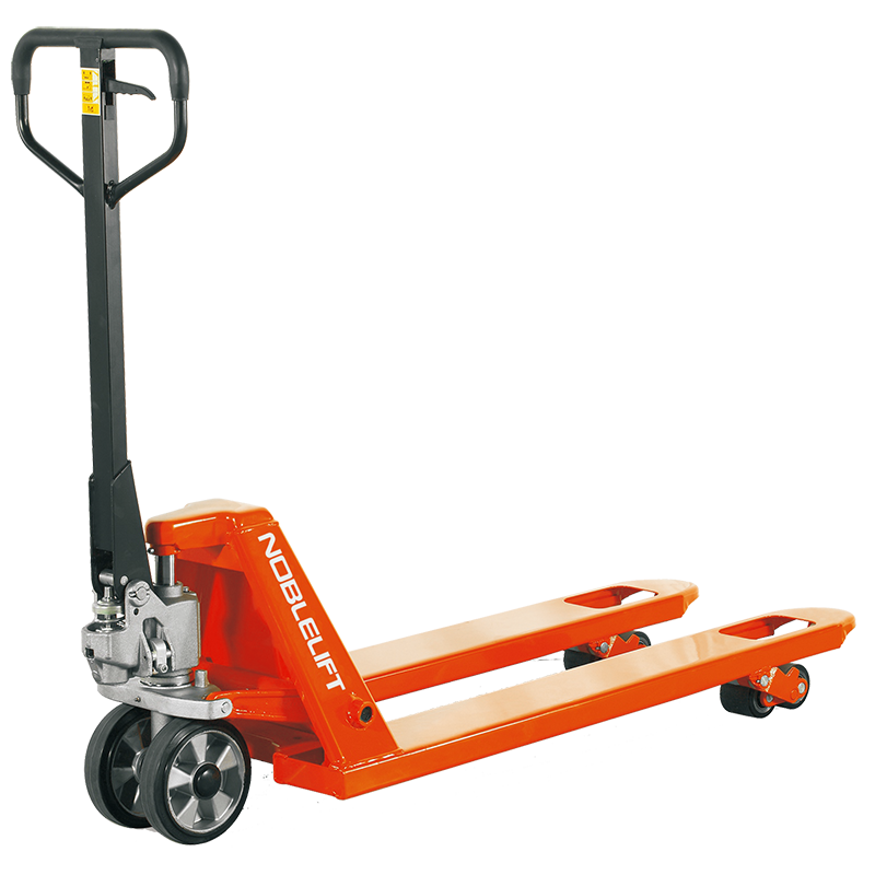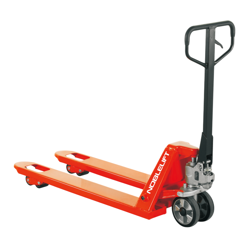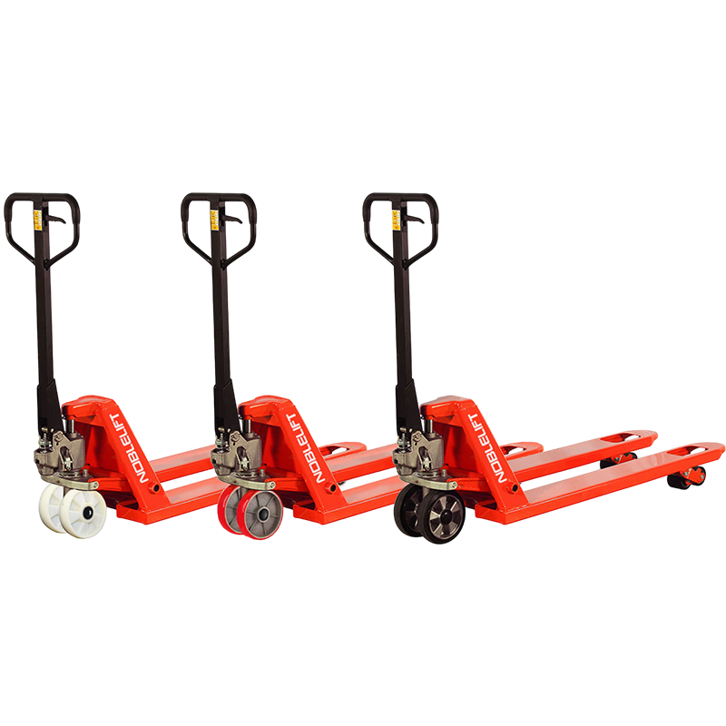 Модельный ряд классических гидравлических тележек. В стандартную комплектацию входят двойные ролики из полиуретана и полиуретановые грузовые колеса.