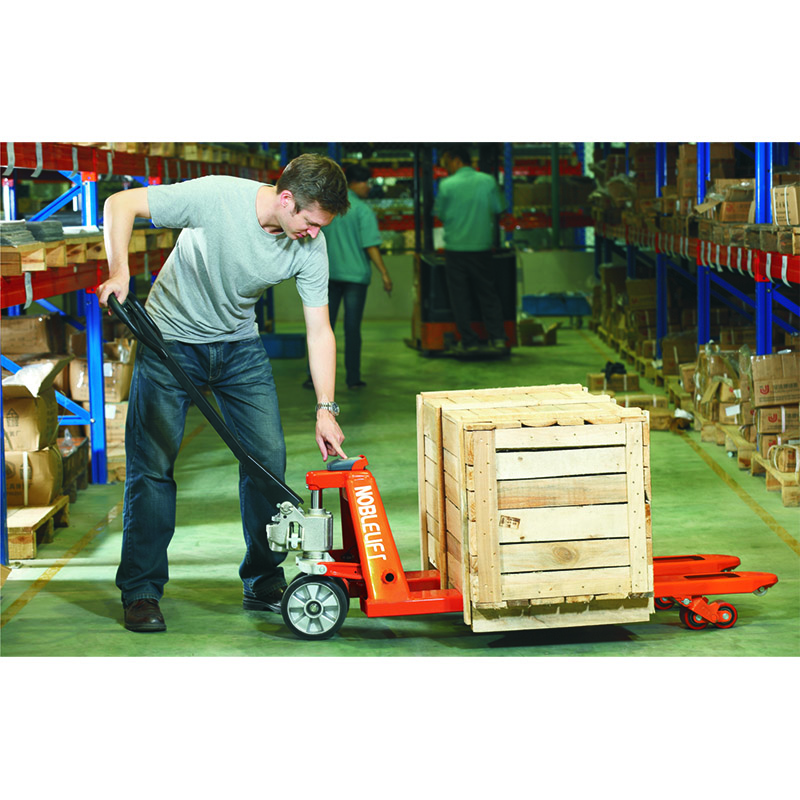 Гидравлические тележки с весами, в отличие от серии HPESR20, не оснащены встроенными в вилы весовыми датчиками. Измерение выполняется с шагом 5 кг. Питание обеспечивается двумя батарейками типа AA (одного комплекта хватает до 3000 взвешиваний).